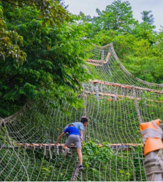 与此同时,植物园还是一个充满生机与活力的研学基地。这里不仅有五彩缤纷的三角梅,还有鹿鸣半岛、松鼠森林、彩虹滑道等游乐项目。孩子们可以在景区小火车的陪伴下,领略山水变幻,从雄伟山峰到宁静湖水,领悟自然之美与人生哲理。