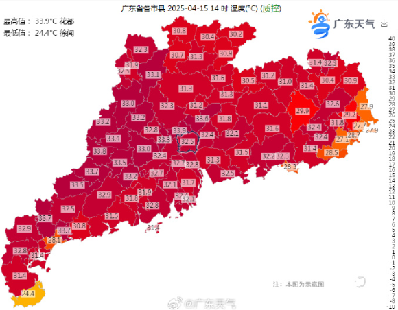 广东的气温霸屏全国气温排行榜