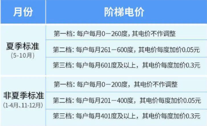 居民阶梯电价执行夏季标准后