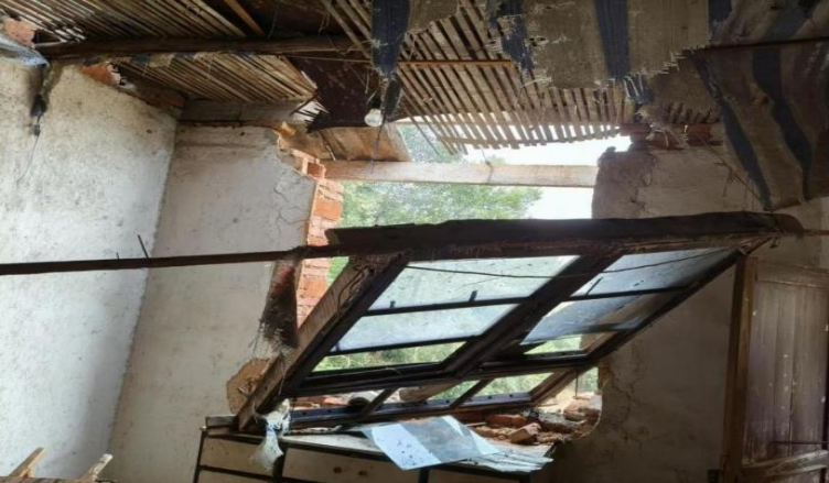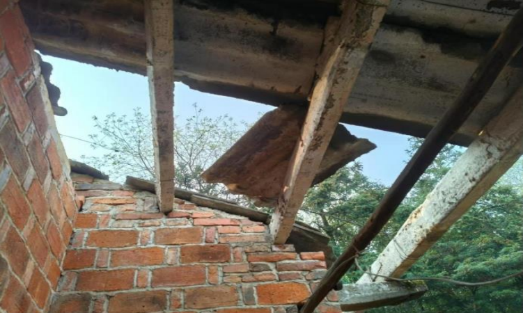 21时10分,强对流天气引发狂风暴雨将陶美丽房屋屋顶掀翻、窗户损毁、墙体严重受损。由于避险转移及时,无人员伤亡。