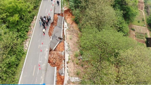 9时许,该风险路段左侧道路滑坡,县应急和安全生产委员会办公室迅速组织应急、交通、自然资源、茶市镇等相关单位和人员开展会商研判,制定详细的道路抢修方案。根据技术人员现场勘查,该公路边坡滑坡宽约20米、长约40米、厚约4米。滑坡造成公路路面开裂下错,裂缝长约50米,错台高约2-3.5米。