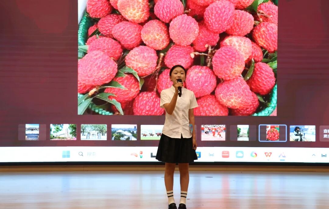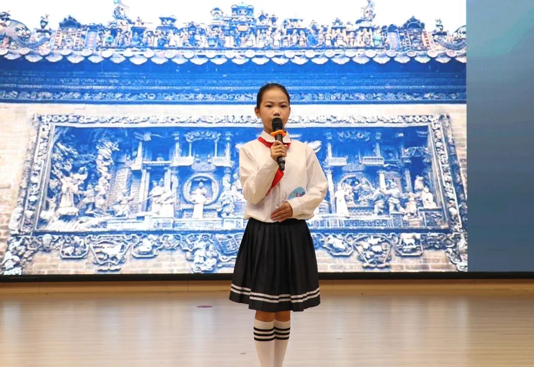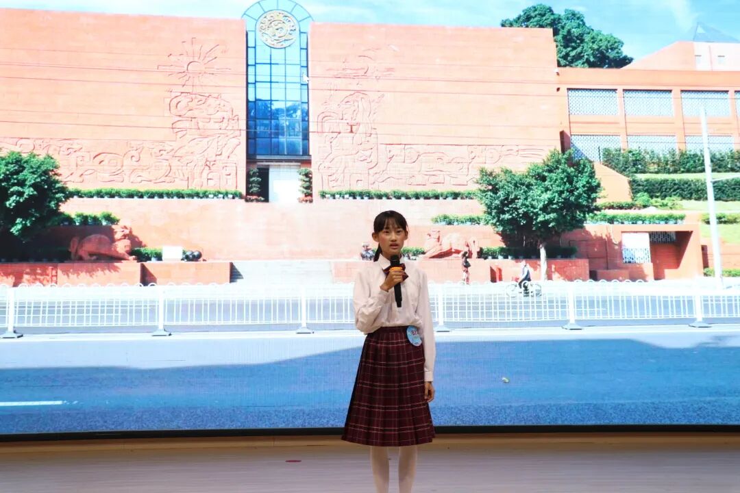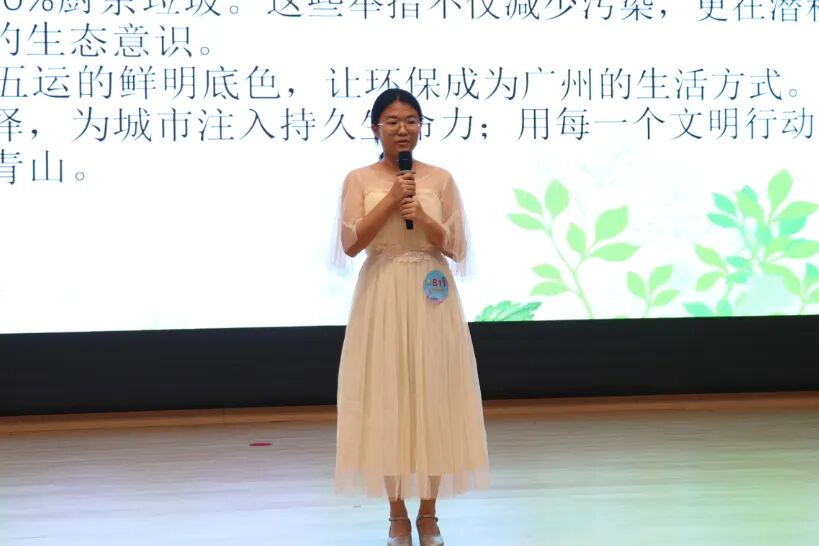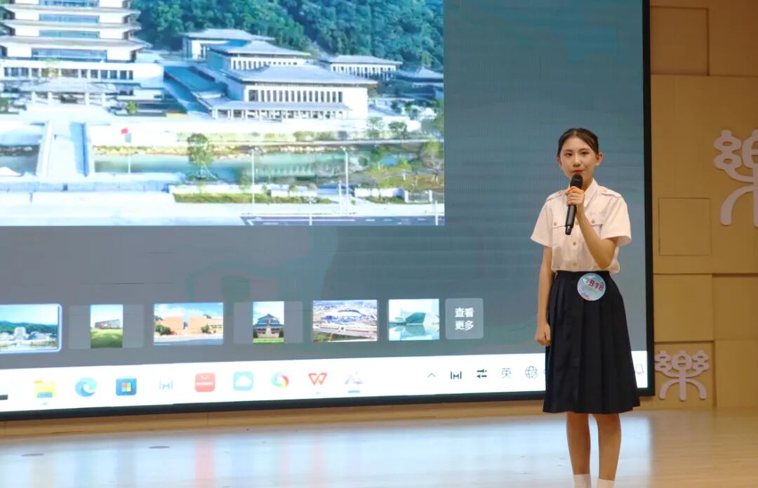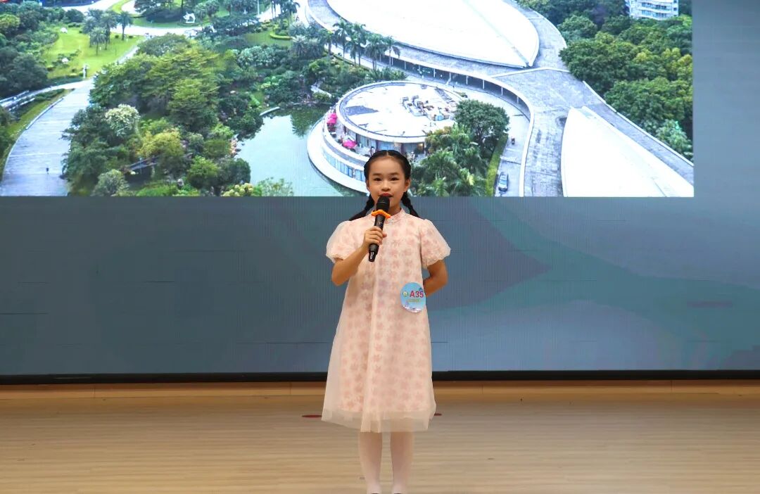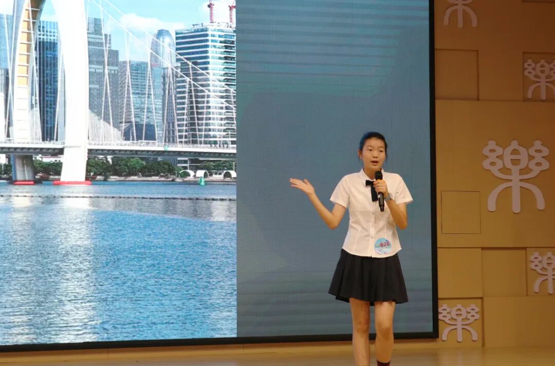 在看图说广州环节,选手们以“看图说广州”的形式,化身小小宣讲员,对图片中的地标建筑、广府美食、运动项目、体育场馆等内容进行宣讲。真挚的感情、激昂的语调和灵活的临场发挥能力赢得了阵阵掌声。