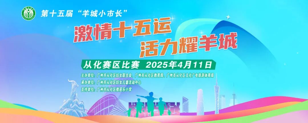 为激发全市少年儿童聚焦全运、关心全运、参与全运的积极性,宣传推动“办好一个会、提升一座城、彰显一座城、幸福一座城”理念,充分展现少年儿童的时代风采和粤港澳大湾区建设发展的新面貌、新风采,助力少年儿童在城市发展中发出从化声音,4月11日,由从化区妇联、从化区教育局、从化区文广旅体局联合主办,从化区妇女儿童活动中心、从化区雅居乐小学承办的第十五届“羊城小市长”系列活动从化区比赛在区雅居乐小学举行。