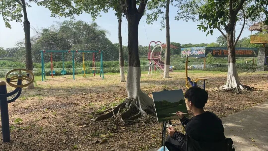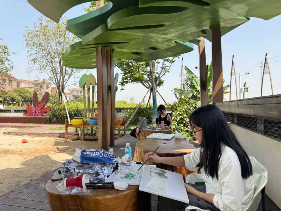 在黄布沙村,百年榕树与青石板路的沧桑质感吸引了众多学生驻足创作;天湖生态邨的湖光山色间,同学们用明快的色调捕捉水网交织的韵律;蒲营民宿的特色细节,则成为展现乡村文旅融合成果的生动素材。“这里的每一处风景都充满故事,我们希望通过画笔让更多人看到沙浦的自然之美与人文底蕴。”参与活动的学生表示。