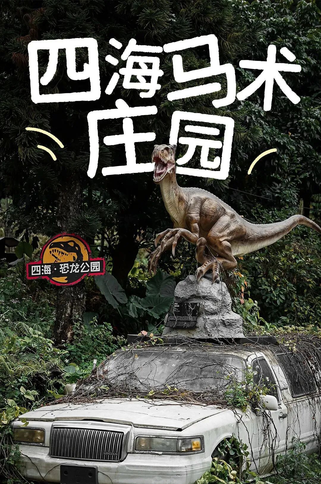 走进庄园,超逼真的恐龙模型昂首伫立,仿佛下一秒就要发出震撼的嘶吼;长满绿植的变形金刚静静矗立,科技感与自然完美融合;还有巨大的鲸鱼标本、古老的恐龙骨架、复古的古董车……