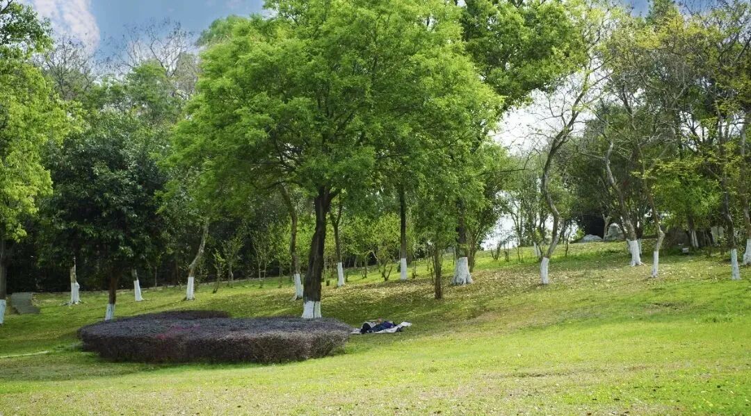 来这里踏青,可以坐在草坪上