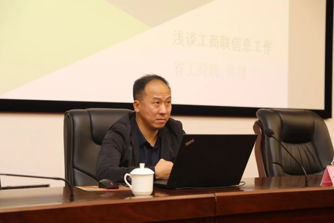 黄健以“浅谈工商联信息工作”为题,从信息工作重要性、信息为谁报、信息报什么、信息怎么报、如何写好信息、如何提高信息采用率等方面,并结合大量生动的案例,对宣传信息工作作了全面深入的讲解。