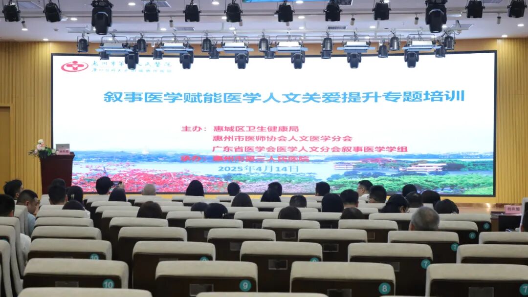 为深入贯彻落实《医学人文关怀提升行动方案(2024-2027年)》(国卫办医急发〔2024〕18号)文件精神,推进叙事医学在医疗实践中的创新应用,2025年4月14日,由惠城区卫生健康局、惠州市医师协会人文医学分会、广东省医学会医学人文分会叙事医学学组联合主办,惠州市第三人民医院承办的叙事医学赋能医学人文关爱提升专题培训在惠州市第三人民医院圆满举办。