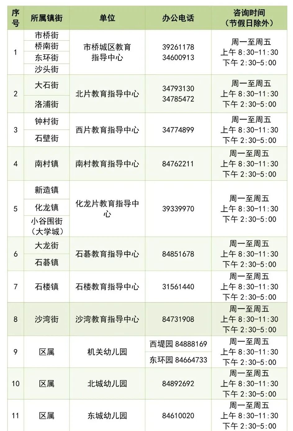 番禺区各镇街、区属幼儿园