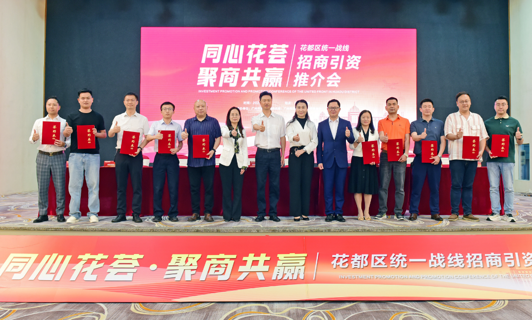 会上,花都经开区、花东镇、花山镇有关负责人分别作招商引资推介及政策宣讲,全方位展示区域投资优势和发展潜力。广州健之杰洁具有限公司、广州惠恩医疗投资发展有限公司、广州市天仁药业有限公司等企业共5个项目与花都区委统战部、区侨联、花城街等相关部门及企业成功签约,涵盖民生医疗、餐饮服务等,投资金额3.8亿元。