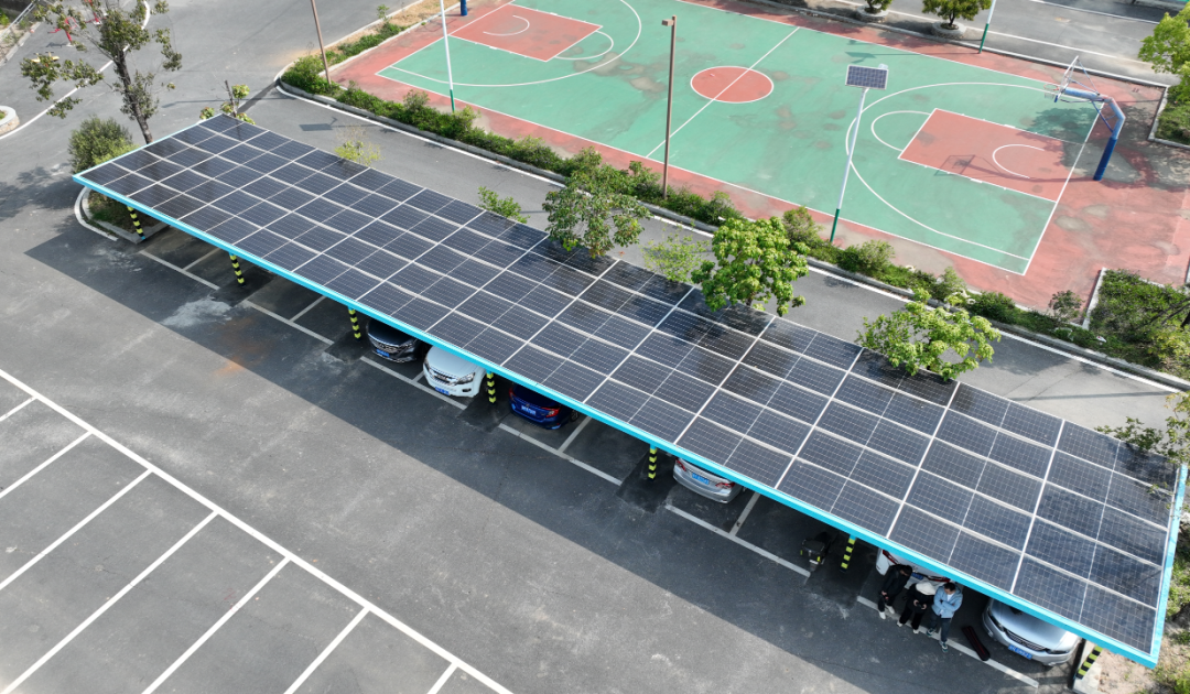 崭新的光伏停车棚,顶部铺设了高效单晶硅光伏板,在阳光照耀下熠熠生辉,每一块光伏板都像一块镜面将细碎的阳光折射成流动的光河,既保护了车辆,也为燥热的天气增添几分清凉。“装了这个光伏停车棚,夏天停车再也不怕暴晒了,而且还能为村里发电增收,一举两得!”卢秋荣介绍,这个集光伏发电与停车功能于一体的便民设施占地约50平方米,可同时容纳12辆汽车停放,目前棚内配备了2个智能充电桩,能满足村民的新能源汽车充电需求。