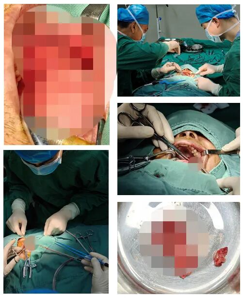 经过充分的术前准备,于3月14日为患者实施左侧颊部恶性肿瘤局部扩大切除术:暴露左侧颊部,沿左侧颊部肿瘤一圈做扩大切口,逐步切开黏膜、分离皮瓣,暴露肿瘤,沿肿瘤边界外约1cm完整切除肿瘤及周围部正常组织,包括部分颊肌、口腔黏膜等,双极电凝充分止血后盐水冲洗术腔,使用生物膜覆盖术腔周围与口腔黏膜缝合。手术由耳鼻咽喉头颈外科王建设主任医师主刀,在口腔科戴俊嘉医师协助下进行。