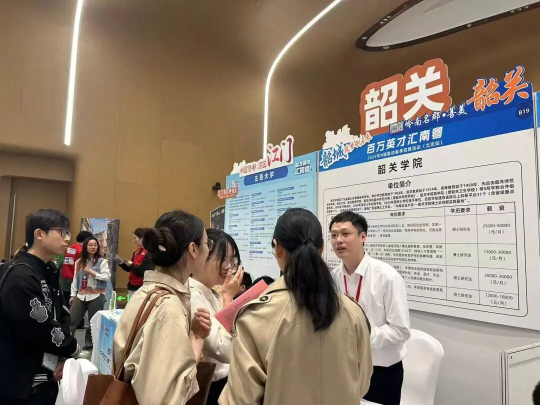 4月19日-20日,“百万英才汇南粤”2025年N城联动春季招聘活动在北京中关村国际创新中心、杭州国际博览中心、武汉洪山体育馆举行。我市积极参与其中,组织企事业单位赴三地招聘,凭借良好的发展环境、丰富的岗位资源、以及优厚的人才政策,吸引众多求职者关注,现场共收到近千份简历。