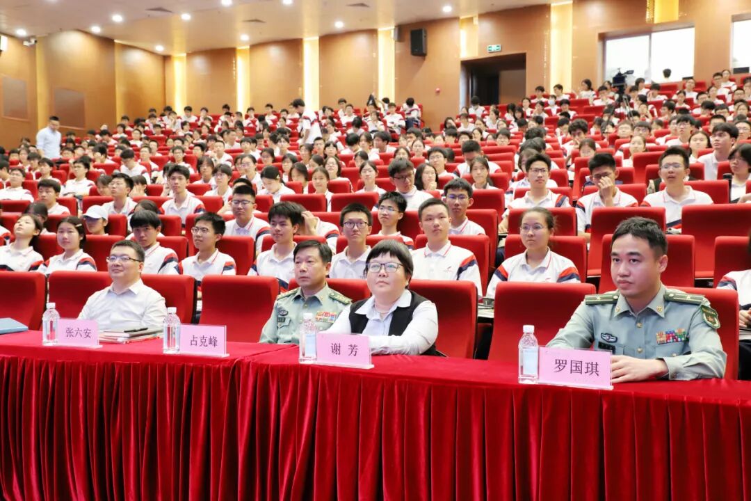 珠海市委教育工委委员、市教育局党组成员、副局长谢芳,珠海市第一中学党委书记张六安、副校长赵强,珠海警备区罗国琪及高一同学们参加报告会。活动由学校党委书记张六安主持。