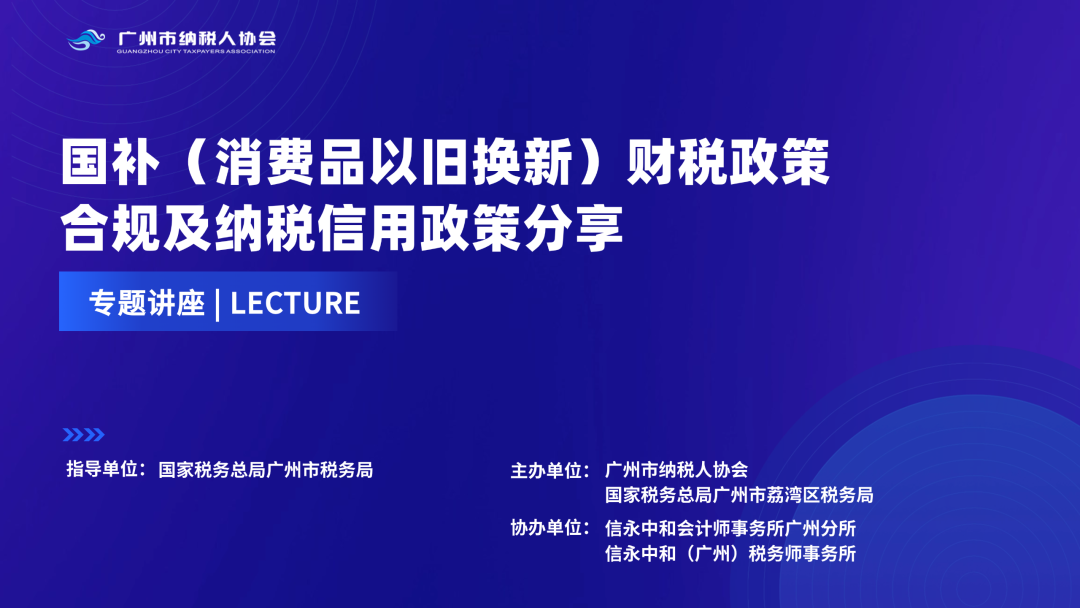 为助力广大企业纳税人深入理解国补(消费品以旧换新)财税政策及纳税信用政策,提升税收风险管理水平,在国家税务总局广州市税务局的指导下,2025年4月17日,广州市纳税人协会与广州市荔湾区税务局强强联合,特邀协会创新型智库专家单位信永中和会计师事务所,联合举办“国补(消费品以旧换新)财税政策合规及纳税信用政策分享”讲座。国家税务总局广州市荔湾区税务局四级主办薛芷青、信永中和(广州)税务师事务所税务合伙人吴伟两位嘉宾与现场30多位企业财务负责人进行现场互动和交流。