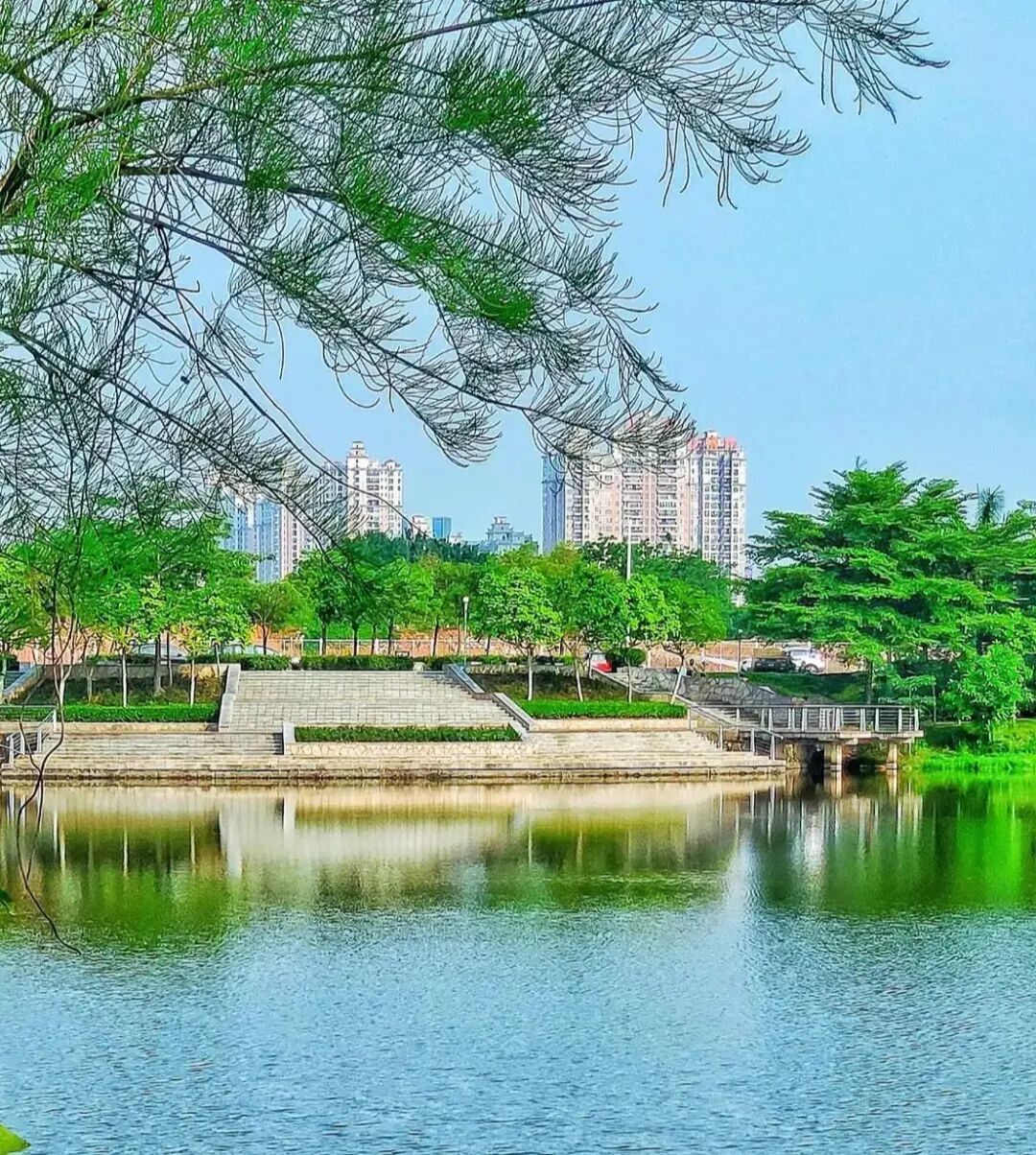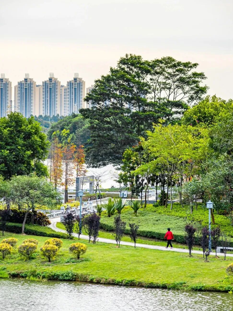 鹿江公园是惠州人的新宠宝藏地,占地虽小但五脏俱全,湖光、林荫、草坪,打卡拍照超出片。