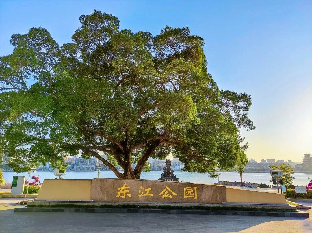 东江公园隐身于繁华都会的河堤旁,隔江望去,还能看到合江楼、东江沙公园等,不少惠州人在这下棋、垂钓,惬意时刻正是如此。