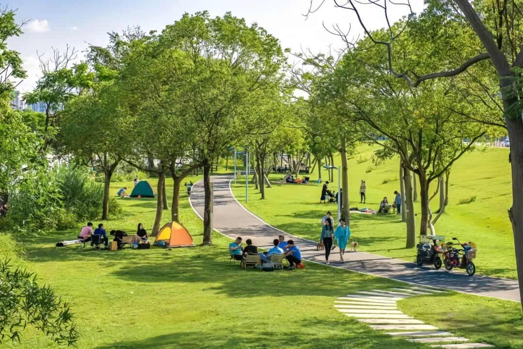 一家人可以选择在亭台楼阁野餐,也可以席地而坐,感受身后吹来幽幽的湖风,耳边是清脆的鸟啼,惬意的生活不过如此了吧。