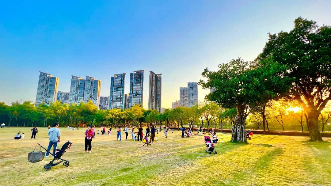 天气晴朗时,小朋友们在草坪上奔跑、放风筝,还能和家人朋友一起野餐、晒晒太阳,好不惬意!