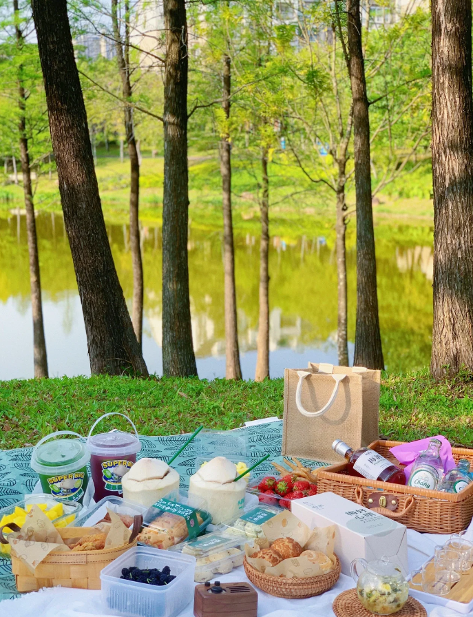找一处无人的草坪,铺上野餐垫,摆上美食与饮品,享受着美食与美景的完美邂逅。每一次呼吸都充满了甜蜜与清新,让人陶醉其中,不愿离去。