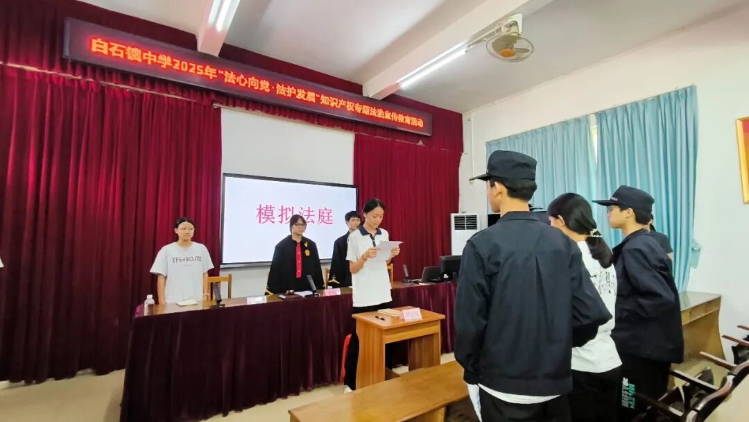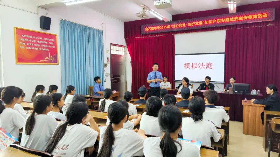 2025年4月26日是第25个世界知识产权日。4月24日,云安区人民法院到白石镇中学开展以“法心向党·法护发展”为主题的“模拟法庭”活动,为学生们带来一堂精彩生动的知识产权专题法治课。