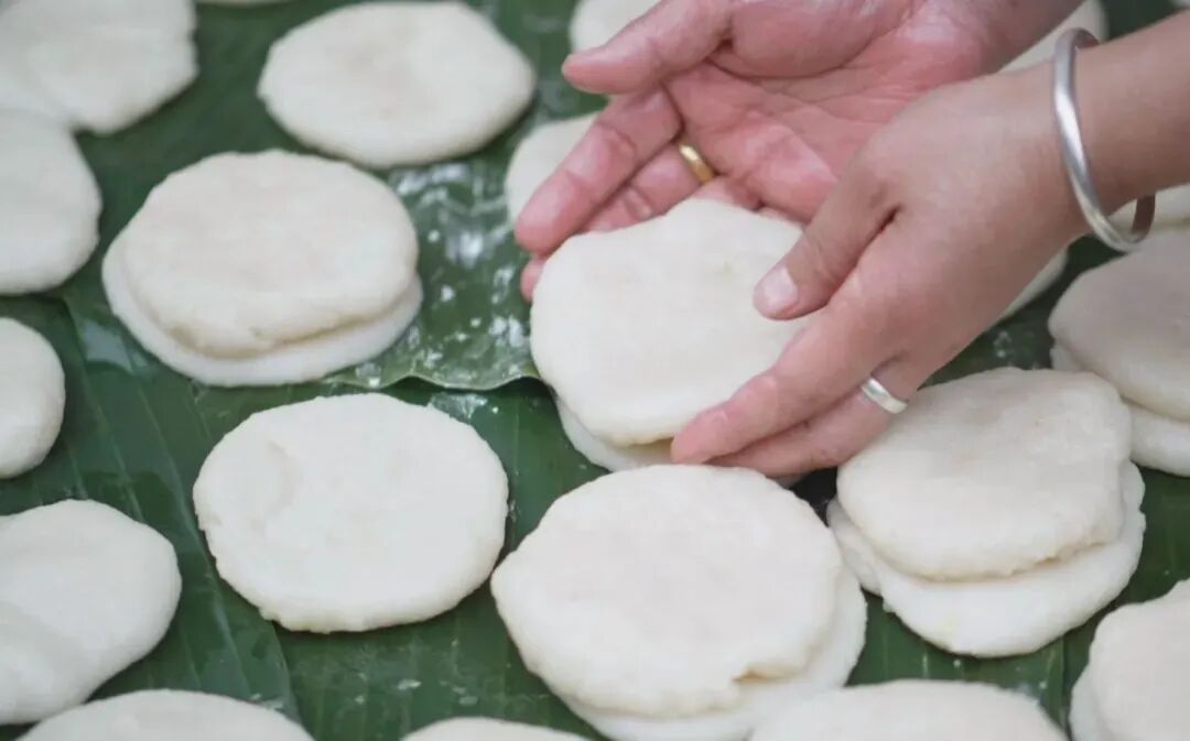 最后用手按压成饼状