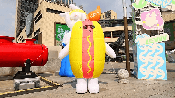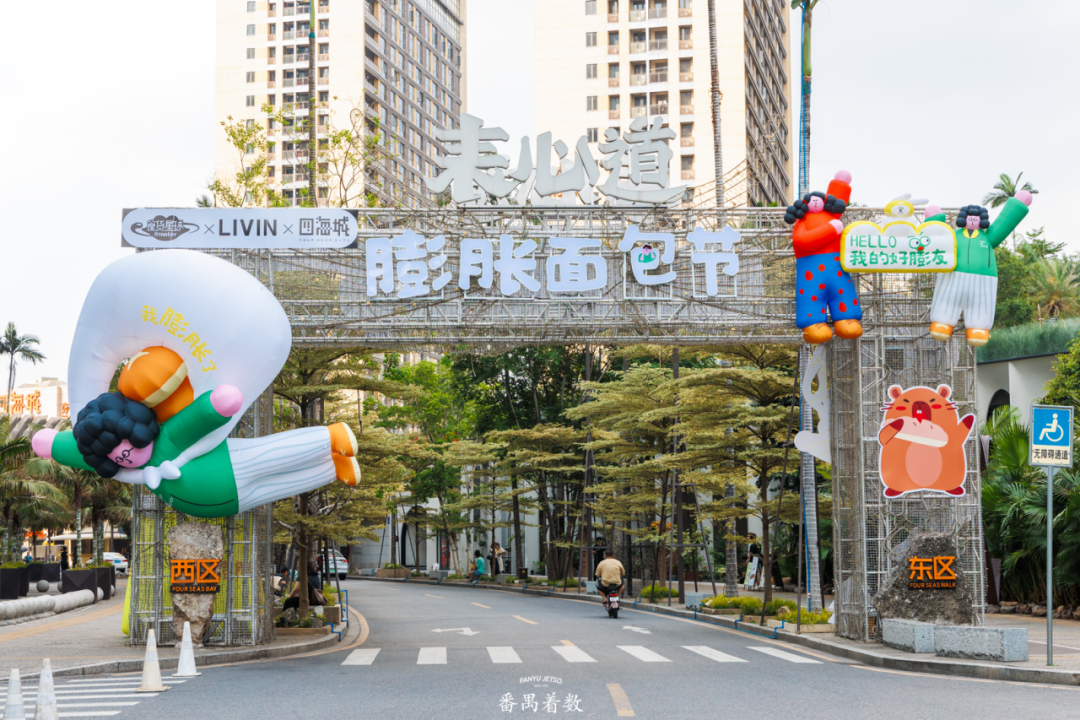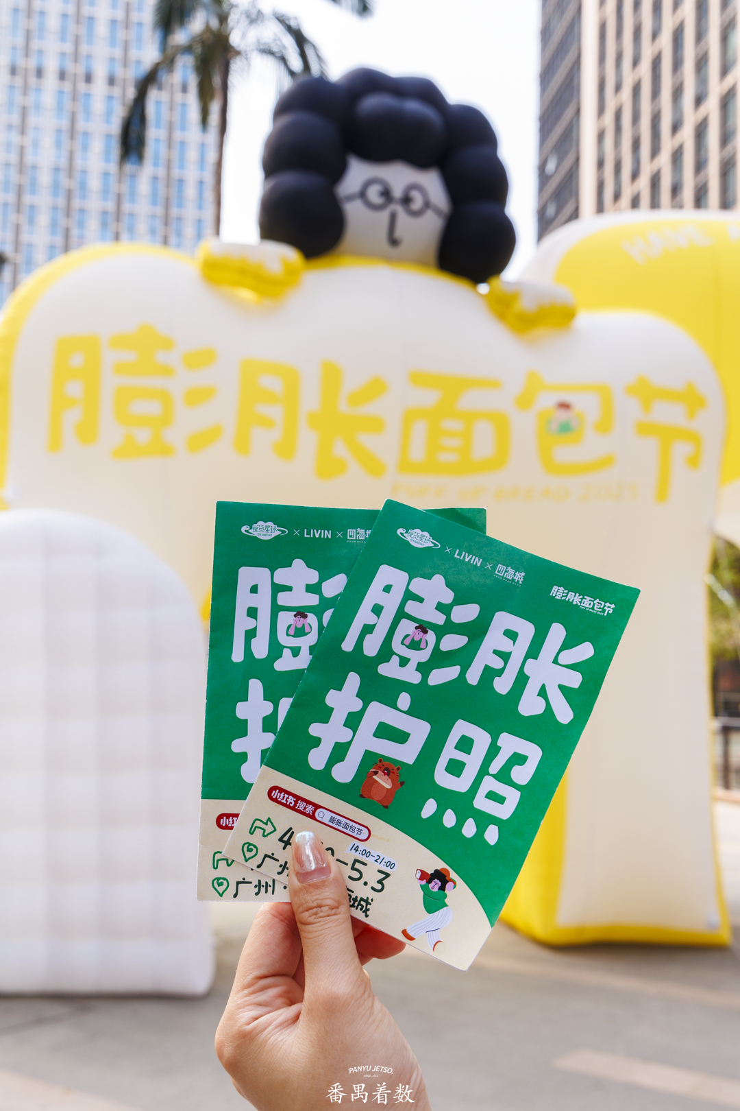 除了打卡装置和集章玩法,膨胀面包家族巡游也不容错过!活动期间,每天固定时段,憨态可掬的面包人偶会在番禺四海城欢乐巡游。