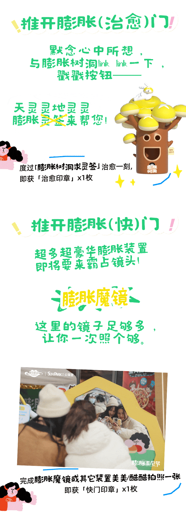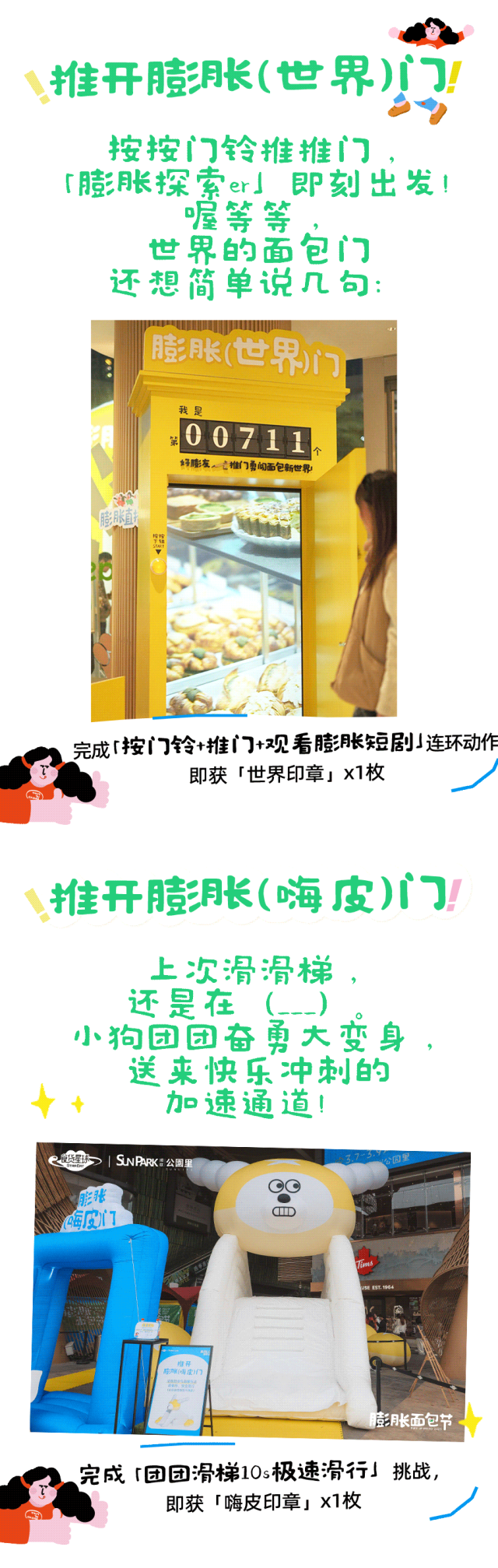 手握「膨胀护照」,一键解锁「膨门N连」趣味玩法!按照攻略指引,一路打卡各神秘站点收集印章,每一枚都藏着面包节的独特惊喜。