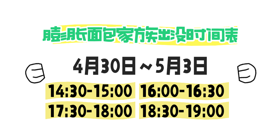 记得在这些时段来“蹲守”,和面包人偶一起合影留念,把这份萌趣记忆珍藏起来。