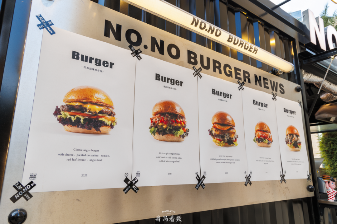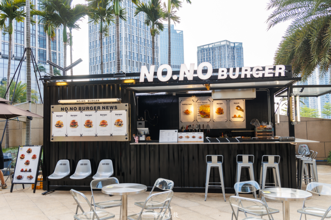 美式街头风满满的「NO NO汉堡」也来啦!超亮眼的黑色集装箱门店,路过就被独特氛围吸引。坚持牛肉饼现点现捶,每一口都是满满的诚意。