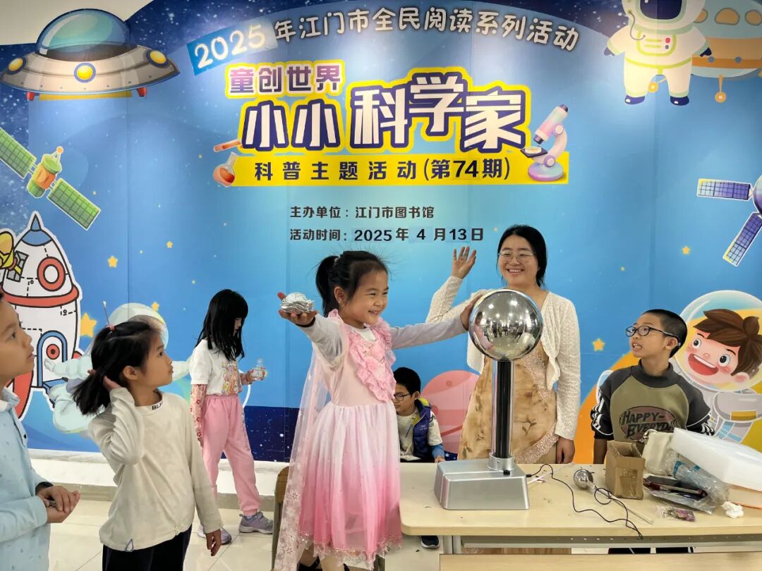 江门市图书馆“童创世界——小小科学家”科普主题活动紧扣生活中的科学现象,将晦涩的科学原理转化为生动易懂的实验操作,让孩子们在动手操作中感受科学魅力,在欢声笑语中培养探索精神。在第74-75期的精彩活动中,孩子们走进了静电与溶液导电的奇妙世界,见证了“电”创造的一些神奇瞬间。