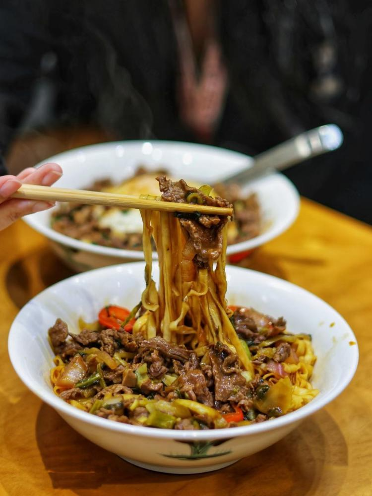 必试的京葱烧牛肉面堪称一绝,做法类似焖面,手工面条筋道弹牙,满满当当的牛肉分量十足,溏心蛋戳破后蛋液裹着面条,一口入魂。酸菜牛肉面也是人气王,酸爽的酸菜搭配鲜嫩牛肉,嗦完面连碗底都要舔干净。