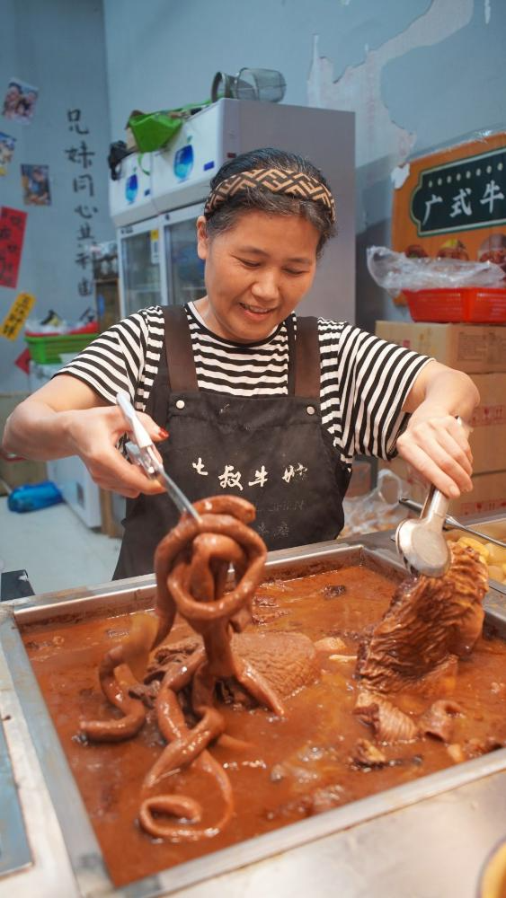 在东沙路的尽头,有一家林记兄妹牛杂铺,小小的十平米店铺,却藏着让人回味无穷的美食。傍晚时分,捧着一碗热气腾腾的牛杂大快朵颐,满嘴油光间,忙碌一天的疲惫一扫而空,只剩暖胃又暖心的满足感。