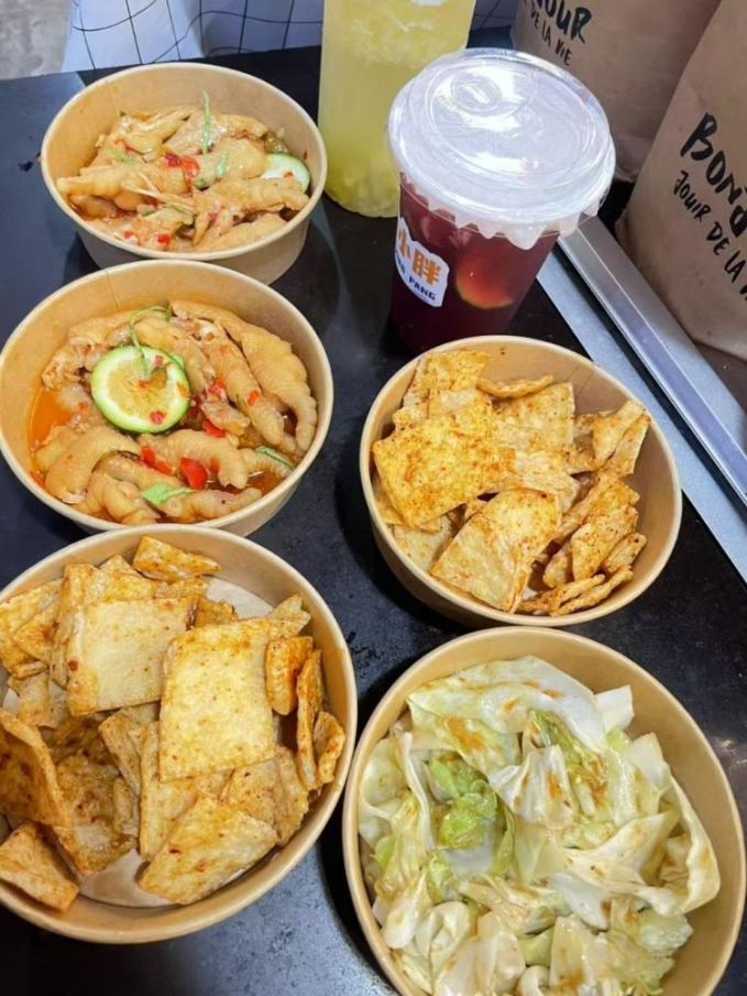 红薯饼被炸出精致的蕾丝花边,虾片在油锅里膨胀成珊瑚礁般的模样,就连麻辣豆干都让人垂涎欲滴。卤味、炸货、手作茶饮,还有各种小吃混拼露营餐食(需提前预定),这是专属于Z世代的叛逆吃法,每一口都充满惊喜与创意,让人欲罢不能。