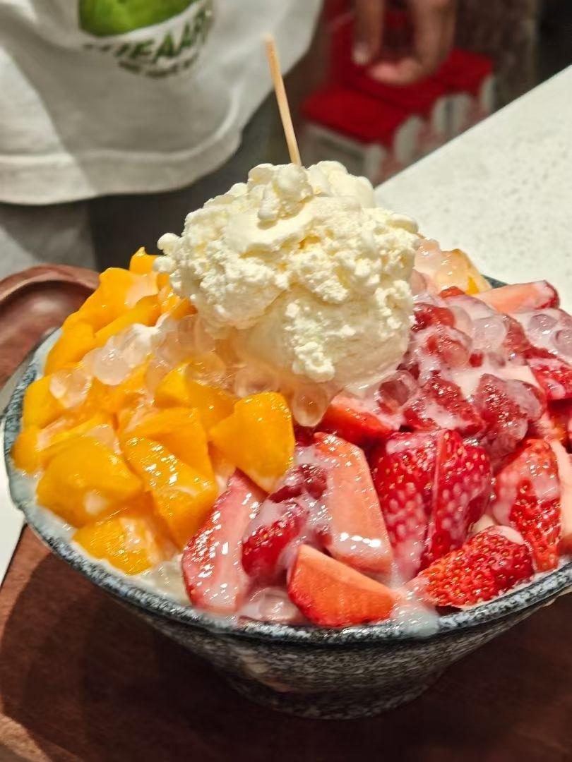巨多蓝莓芒果冰,绵绸细刨冰裹满奶香,水果新鲜又大块,一口入魂,仿佛把整个夏天的甜蜜都装进了碗里。