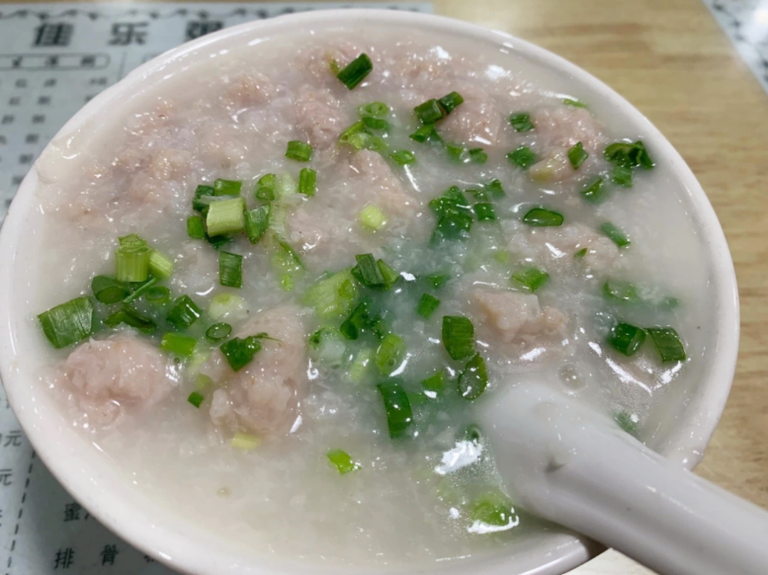 人气最高的牛肉肠粉堪称一绝,老师傅精湛的手艺让米浆在蒸笼里幻化成薄如蝉翼的粉皮,现腌的牛肉均匀地铺陈在粉皮上,几秒内迅速卷起,粉皮竟能做到不破不裂。淋上祖传豉油,入口瞬间,米香裹着肉汁在舌尖炸开,嫩滑鲜美,再搭配一碗塞满鱼片、猪肠或咸肉的热粥,绝对是早餐界的 “太极两仪” 。