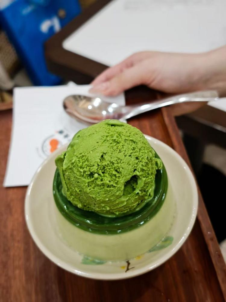 必点的抹茶水果系列牛奶冰,让抹茶脑袋直接香迷糊,绵密的牛奶冰打底,搭配新鲜水果,上层的白色芝士糊更是灵魂,一定要混着雪糕、冰沙一起吃,口感丰富到极致。