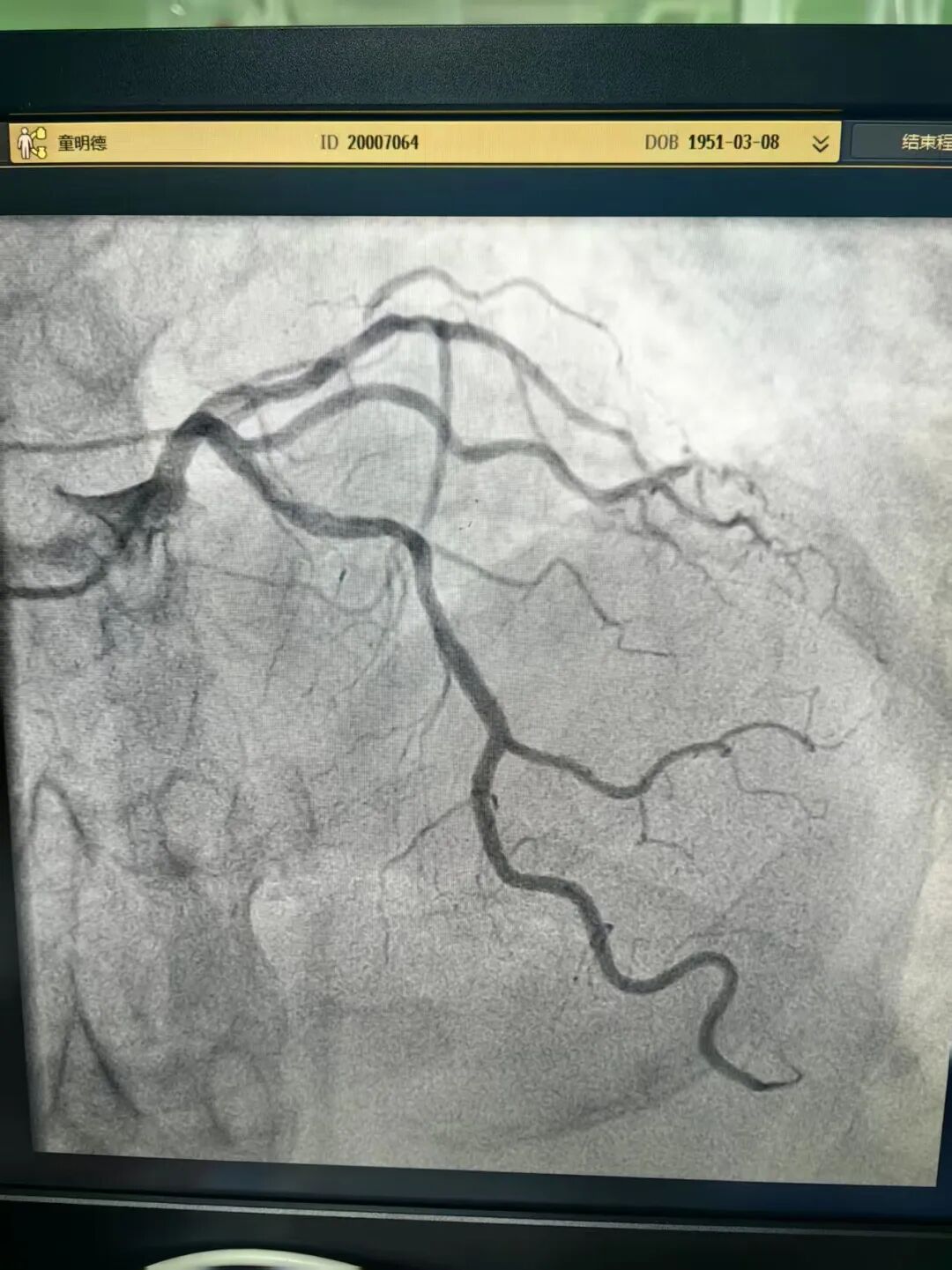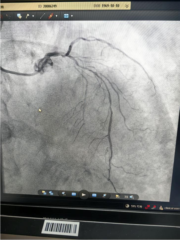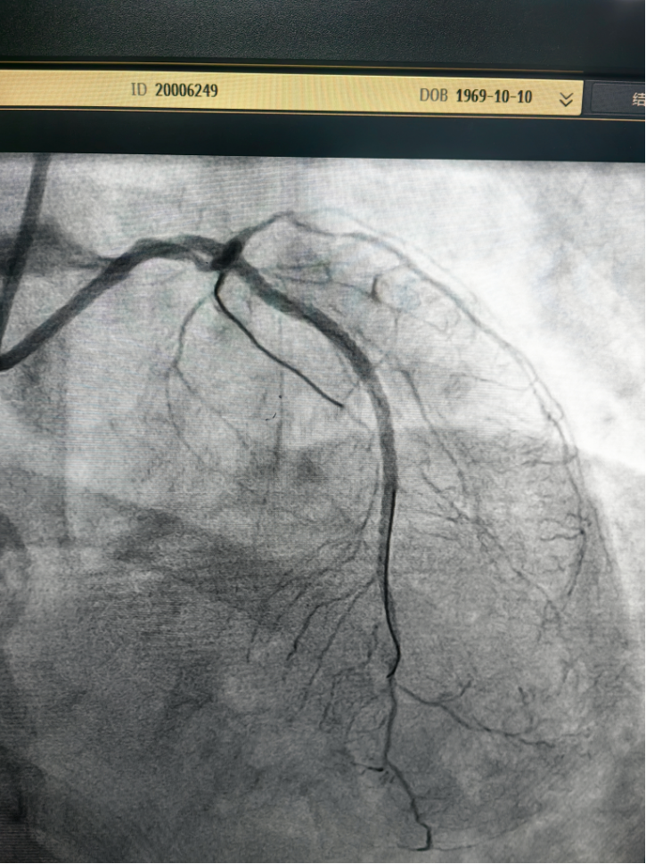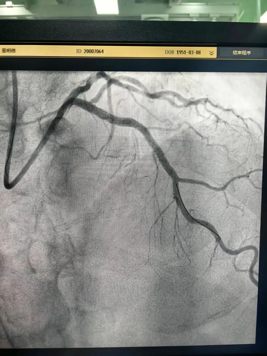此外,一名74岁的男性患者因PCI(经皮冠脉介入术)术后17年再发胸痛前来就诊。冠脉造影显示他前降支近端模糊病变,肉眼判定其狭窄程度并不严重,但患者症状典型。