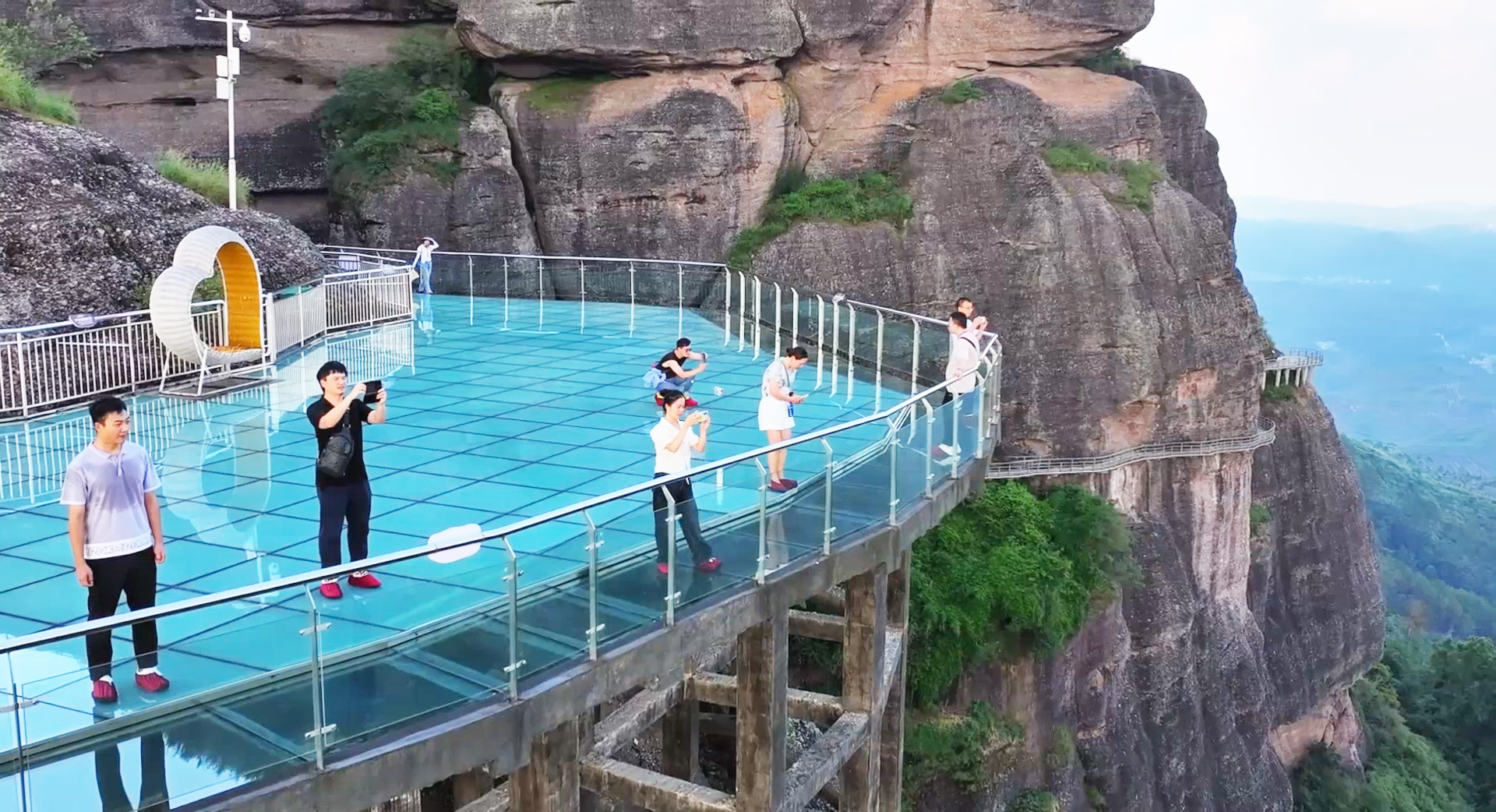 霍山秀丽的自然风光、险峻的丹崖赤壁和奇岩秀石吸引了众多游客前来游玩。登上“网红”景点玻璃栈道,丹霞地貌的景色让广大游客向往,在崇山峻峰间尽赏其神奇秀美,感受大自然的鬼斧神工。