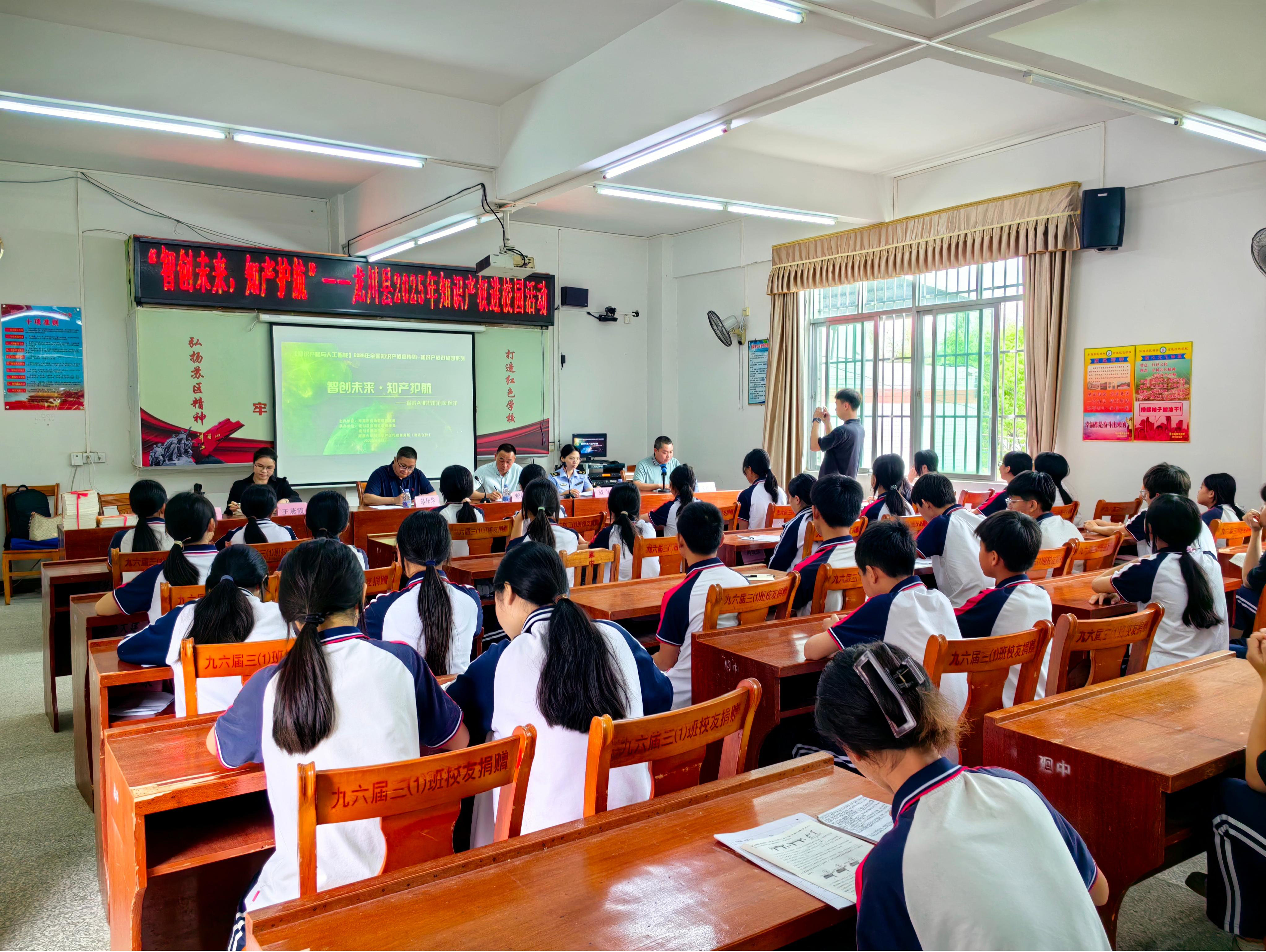 为进一步加强知识产权教育工作推广和普及力度,提升广大师生尊重和保护知识产权的意识,4月23日,龙川县在廻龙中学开展主题为“人工智能与知识产权”2025年知识产权进校园活动。