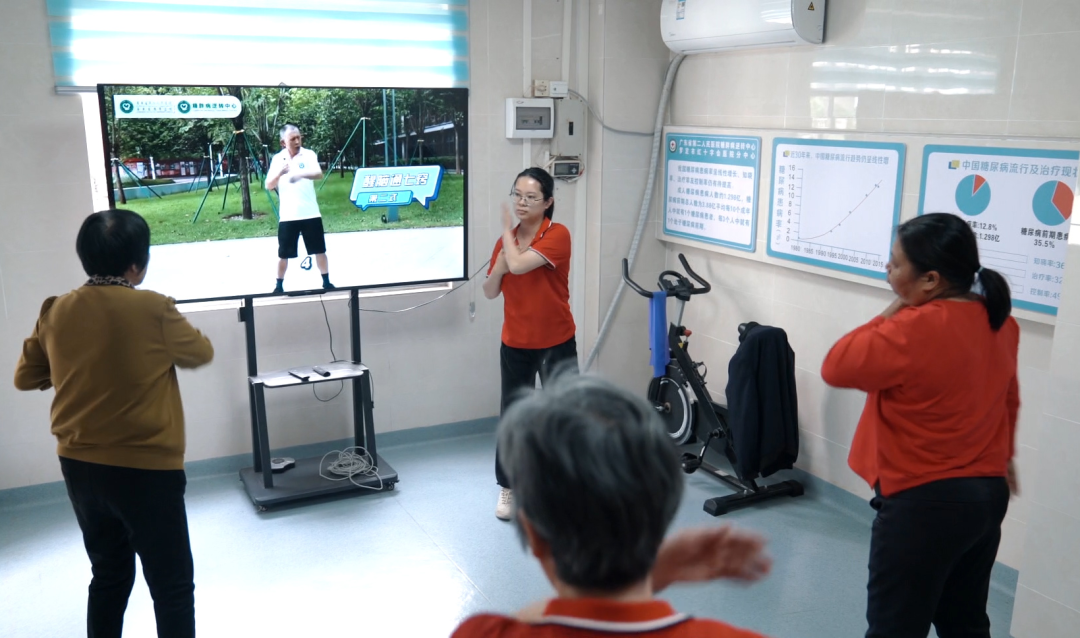 “先吃青菜再吃肉、蛋,最后再吃主食。无论根茎类主食还是杂粮饭、杂粮面等,都应最后进食。”中心医护人员在日常指导中反复强调科学饮食的重要性。通过每周健康讲座、谷根操教学及每月基层义诊,医护人员将健康知识转化为可操作的日常实践。“我把一日三餐的食谱发到微信群,医生教我如何营养搭配,做到均衡饮食,还带着我跳谷根操。”患者李姨分享道。