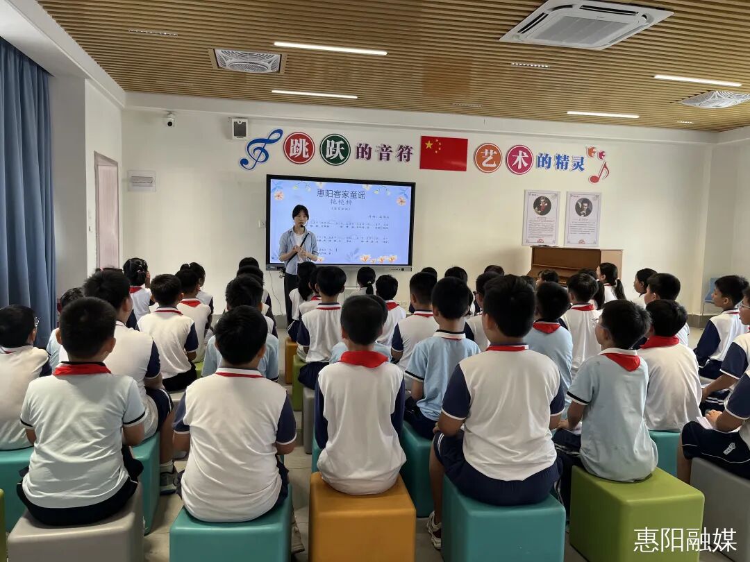 赖俪纯告诉记者,同学们都很喜欢客家文化,特别是连外国面孔的孩子都能唱“猪肉炒咸菜”,或许这就是文化跨越国界,实现交流、碰撞、继而传承最动人的模样。“学生们觉得这首客家童谣很有趣、很新奇,接触下来后非常开心、快乐。然后他们还会互相交流,用客家语言来沟通”。童谣里藏着客家人最鲜活的生活记忆。这位教师谈起教授学生客家童谣的初衷说:“因为我是土生土长的客家人,所以很想将惠阳当地的传统文化带给更多的学生,带到更远的地方。”赖俪纯说,接下来,她会继续在课堂上推广传统文化、客家文化,培养学生全面发展,打造外雅内刚的新时代“文化传承人”。