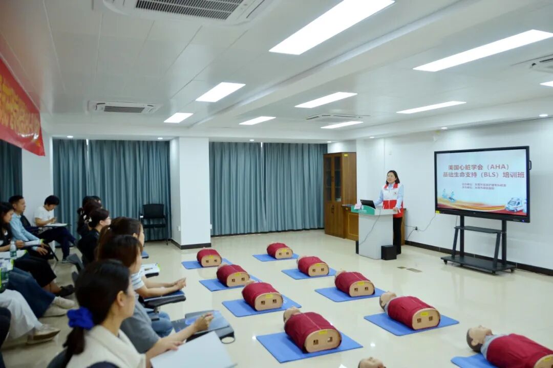 ▲美国心脏学会(AHA)基础生命支持(BLS)培训班现场技能培训
