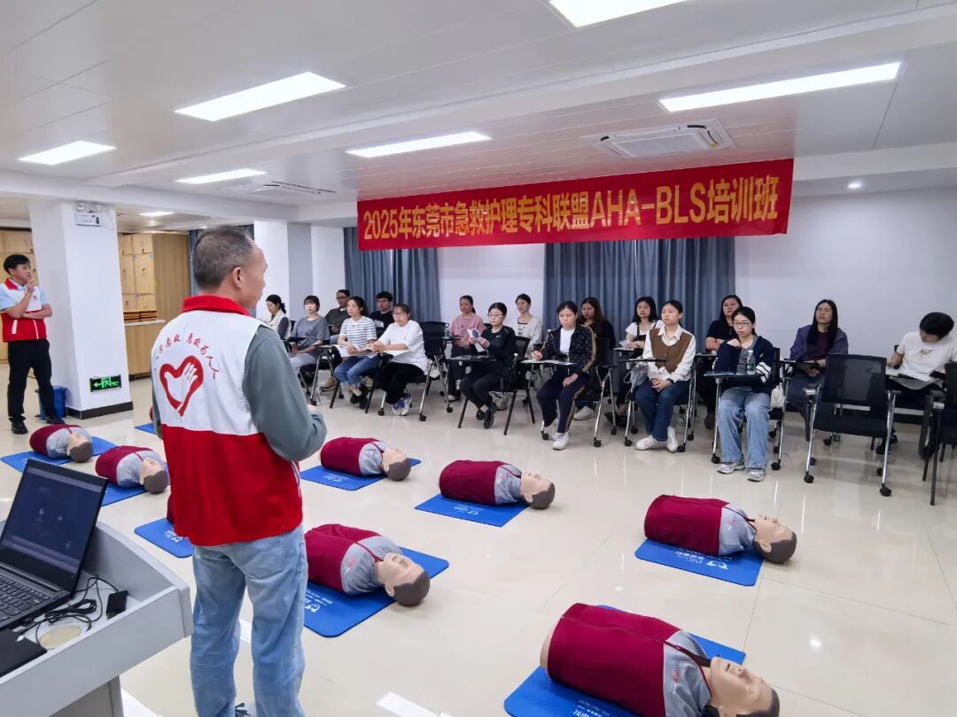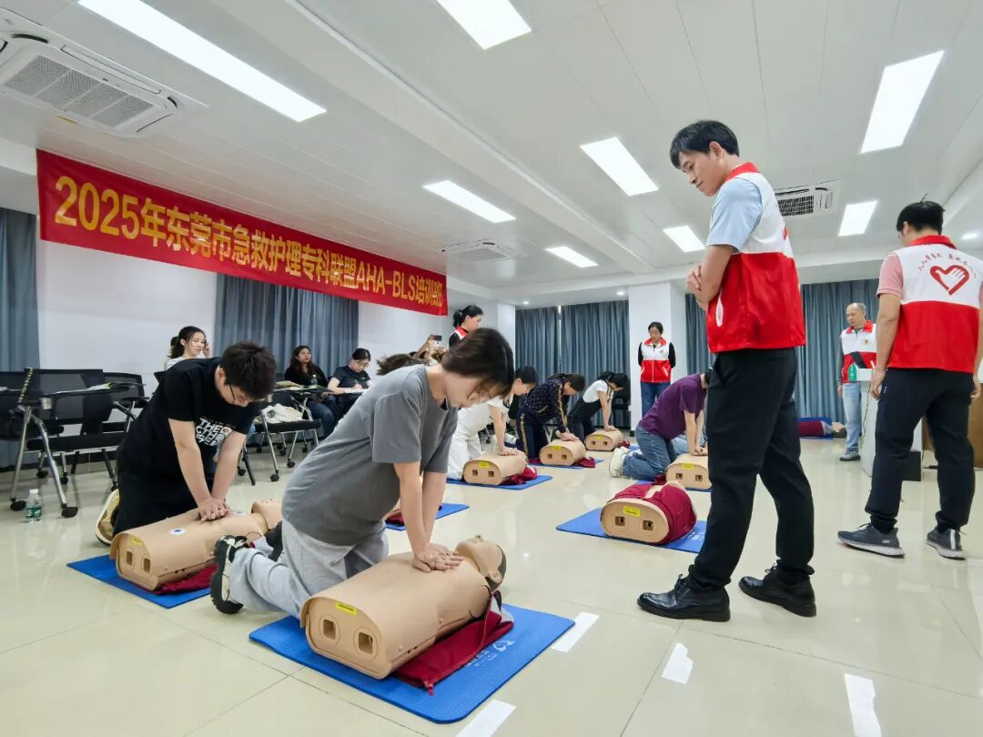 为全面提升东莞市急救护理专科联盟成员单位急救能力,强化急诊医护人员心肺复苏核心技能,近日,由东莞市厚街医院牵头组织的"美国心脏学会(AHA)基础生命支持(BLS)培训班"圆满举行。本次培训面向联盟内43家成员单位,覆盖全市急救护理网络,共80余名医护人员报名参与。