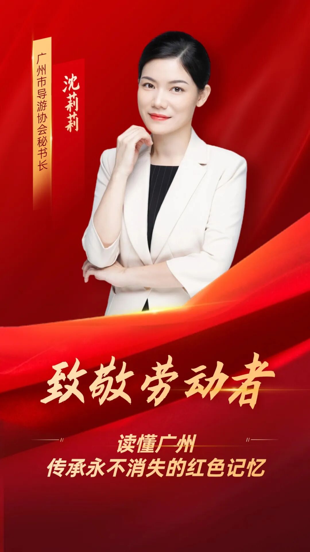 沈莉莉,广州市导游协会专职秘书长,全国红色故事金牌志愿讲解员、国家高级导游、广东省三八红旗手。