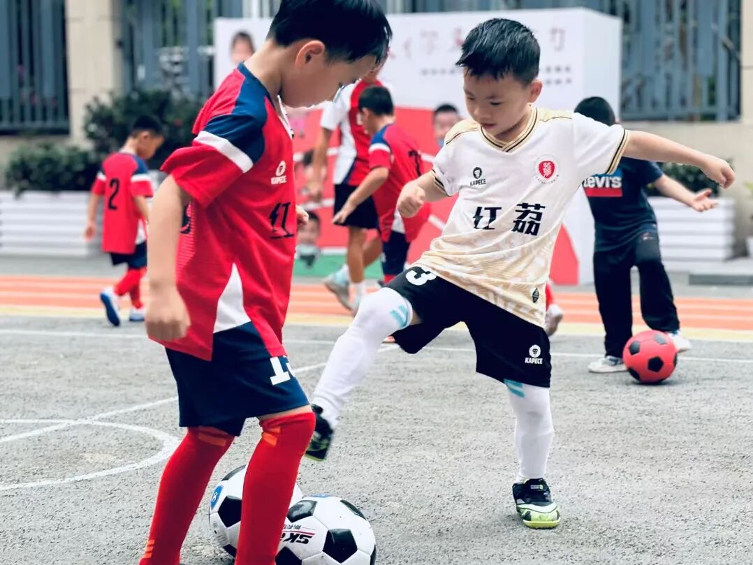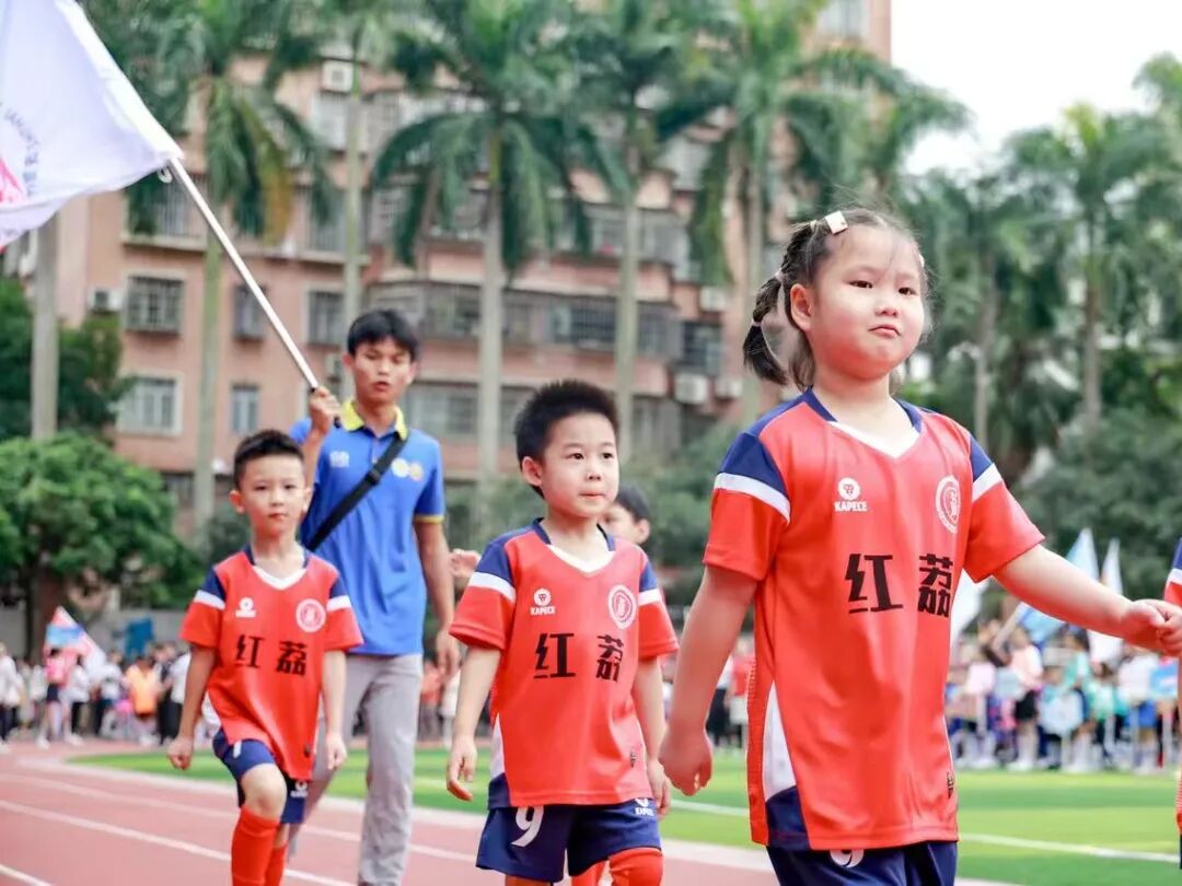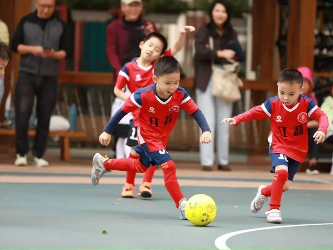 一枚足球,点燃球场烽烟;一声哨响,开启师生狂欢。阳光、草地、孩子,红荔幼儿园编织出一幅幼儿足球最美好的画面。(红荔幼儿园供图)