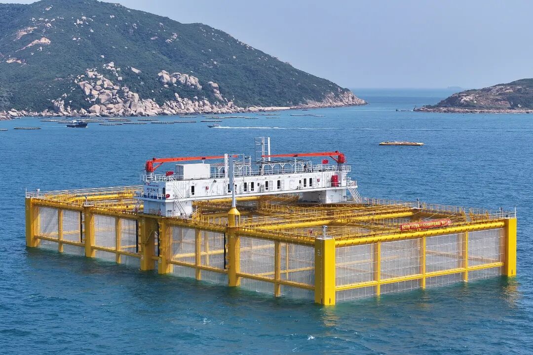 “伶仃牧场1号”深远海养殖平台近日正式布放至珠海万山隘洲岛附近海域,珠海市现代化海洋牧场先行示范产业园(隘洲)项目构建的“1+N”集群式养殖模式正式成形。
