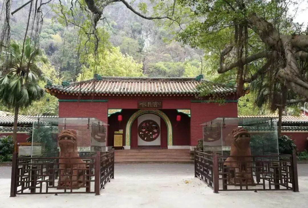 从明代嘉靖至清代乾隆,两广总督府曾设在肇庆长达182年,七星岩的水月宫正是始建于明嘉靖年间,其门前的一对石狮子是肇庆最大的红砂岩石雕双狮,如今它被放置在明代两广总督熊文灿所扩建的水月宫前。