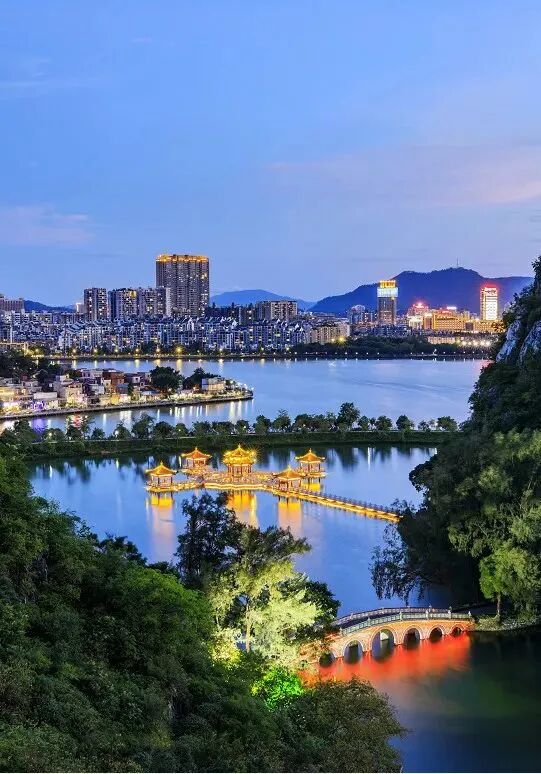 五龙亭在七星岩水月宫东侧的里湖湖面上,有一组水亭,中间一座八角重檐,四旁四座四角单檐,似五龙浮于湖中心。它就是肇庆的地标建筑——五龙亭。五龙亭建于1958年,整组建筑风格参照了北京4A旅游景区北海公园皇家园林建筑五龙亭,融合部分明清时代的建筑元素,给人古色古香的感觉。60多年的风雨历程,五龙亭见证了肇庆旅游业的发展。无论是观光打卡,还是旅途中的小憩,大家都不能错过~