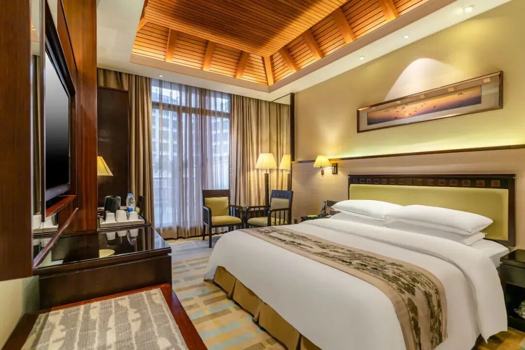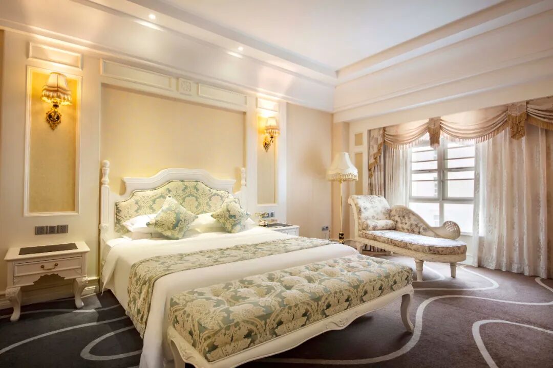 酒店客房风格多样,有欧式客房(爱丁堡客房)、中式客房(紫云轩客房),完美融合中西方建筑文化精华,中式客房大量使用越南进口红木,典雅中渗透出摄人心魂的华贵。
